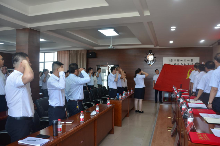大會(huì)在雄壯的國(guó)歌聲中拉開(kāi)帷幕,由集團(tuán)公司機(jī)關(guān)黨支部書(shū)記喬娜同志領(lǐng)誓,17名新發(fā)展黨員集體宣誓,全體黨員重溫了入黨誓詞。