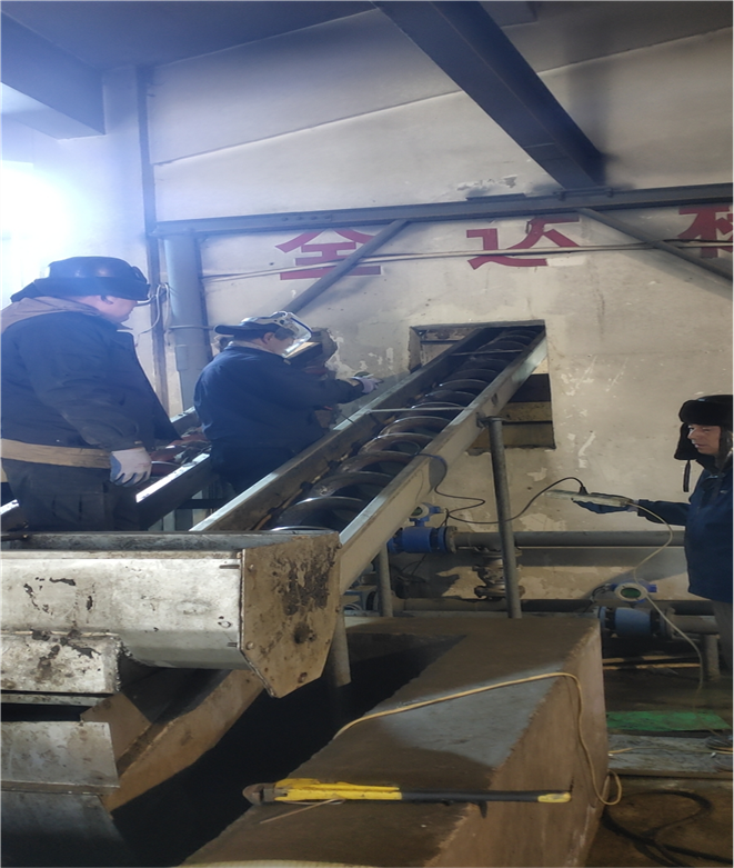 1月5日上午,因設備超負荷運行,污泥處理系統(tǒng)斜螺旋再次發(fā)生斷裂,無法正常使用,為保證生產(chǎn)正常運行,機修段全體人員再次頂著嚴寒,全力搶修,更換新的污泥處理系統(tǒng)斜螺旋,努力保證污泥處理系統(tǒng)安全穩(wěn)定運行。