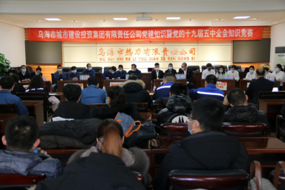1月15日上午,由烏海市城市建設(shè)投資集團有限責任公司黨委主辦的黨建知識暨黨的十九屆五中全會知識競賽決賽在烏海市熱力有限責任公司開賽。來自7個子公司的8支代表隊進入決賽。市投資集團公司黨委書記郝關(guān)峰、市投資集團紀委書記張永東、黨群部副部長陳鶴先、供水公司黨委副書記王永斌、濱河房地產(chǎn)黨支部書記、總經(jīng)理蘇培智及熱力公司領(lǐng)導(dǎo)班子出席了本次比賽。