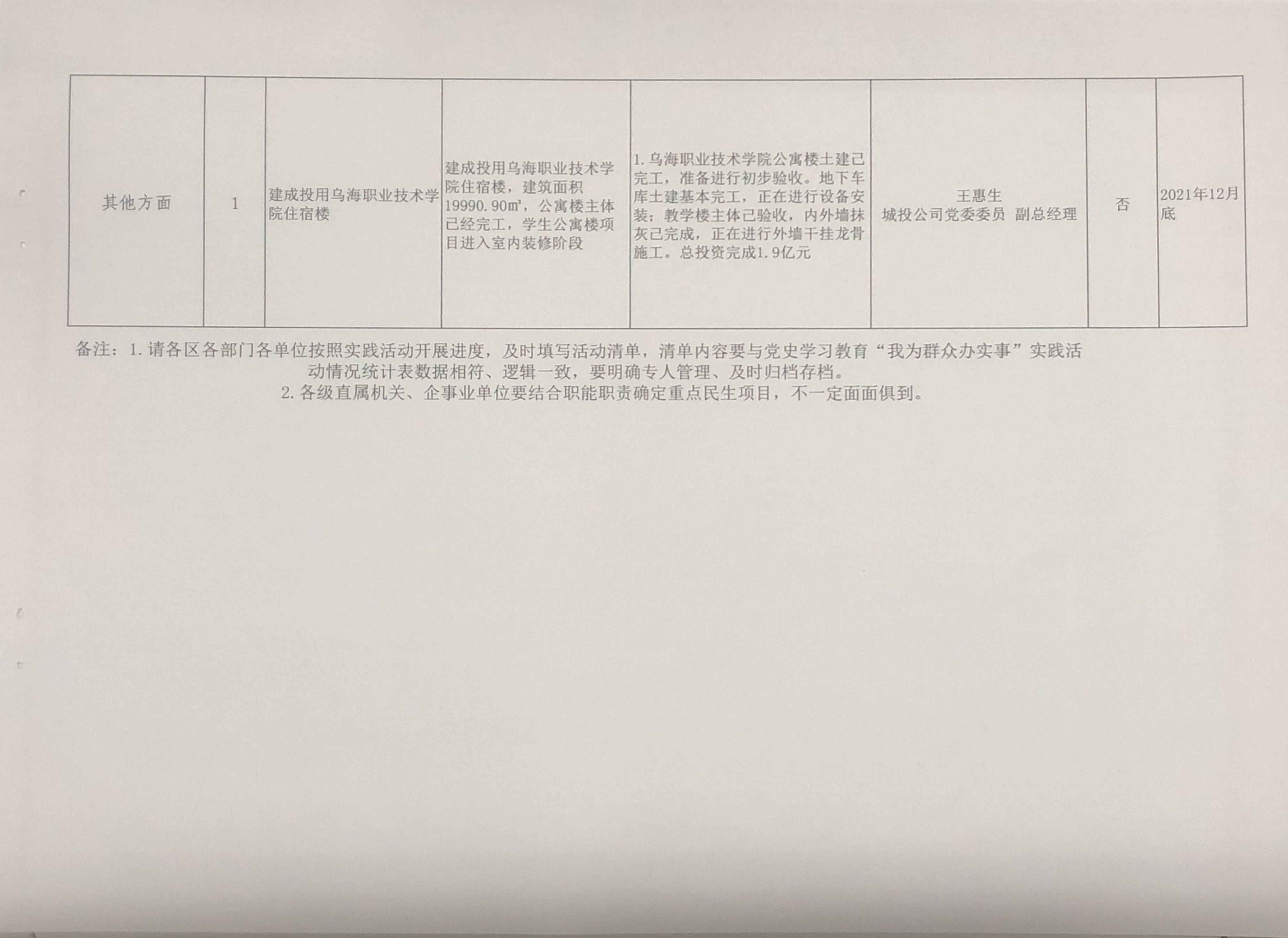 烏海市城市建設(shè)投資集團(tuán)有限責(zé)任公司重點(diǎn)民生項(xiàng)目進(jìn)展清單