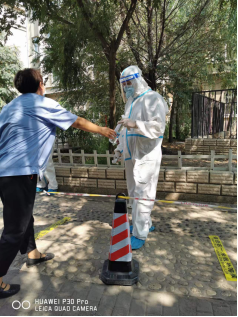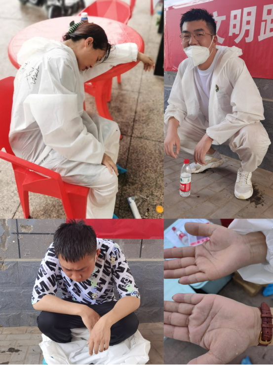 炎炎夏日,烈日當頭,8月的烏海天氣異常炎熱,防護服密不透氣,志愿者們衣衫已被汗水全部浸濕,為減少對防護服穿脫造成的污染,志愿者們持續(xù)工作,堅持不喝水、不上洗手間、不中途休息,持續(xù)換崗時間,才迎來寶貴休息時間。志愿者的奉獻和擔當精神,過往的群眾都看在眼里、暖在心里,不少熱心居民為工作人員們送上了葡萄糖水、雪糕、冰飲等物資,點滴愛心匯聚強大力量,無私奉獻、互幫互助的志愿者精神在這里傳遞。愛心居民的愛心舉動,也進一步鼓舞了志愿者守護大家生命健康安全的決心和信心!
