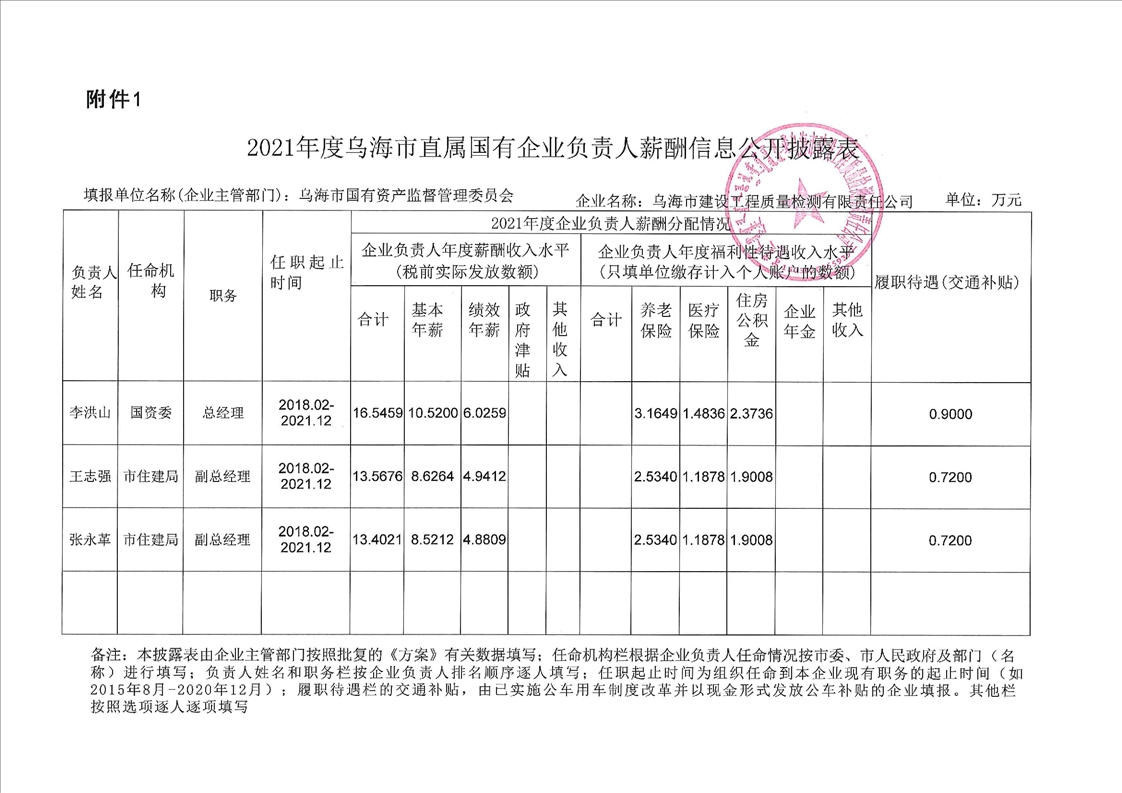 烏海市建設(shè)工程質(zhì)量檢測有限責(zé)任公司2021年度企業(yè)負(fù)責(zé)人薪酬信息公開披露表