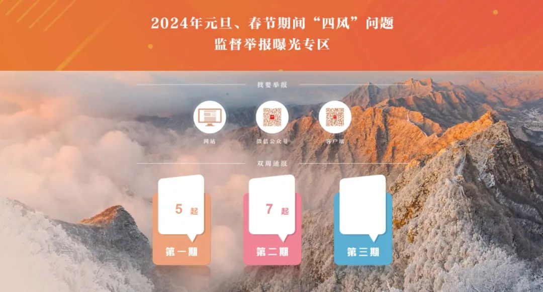 春節(jié)臨近,“四風”問題易發(fā)多發(fā)。中央紀委國家監(jiān)委網(wǎng)站推出“2024年元旦、春節(jié)期間‘四風’問題監(jiān)督舉報曝光專區(qū)”,加大典型案例通報曝光力度。紀檢監(jiān)察機關強化監(jiān)督執(zhí)紀,對包括違規(guī)吃喝在內(nèi)的“四風”頑疾嚴查快處,公開通報典型案例,形成有力震懾,營造風清氣正的節(jié)日氛圍。