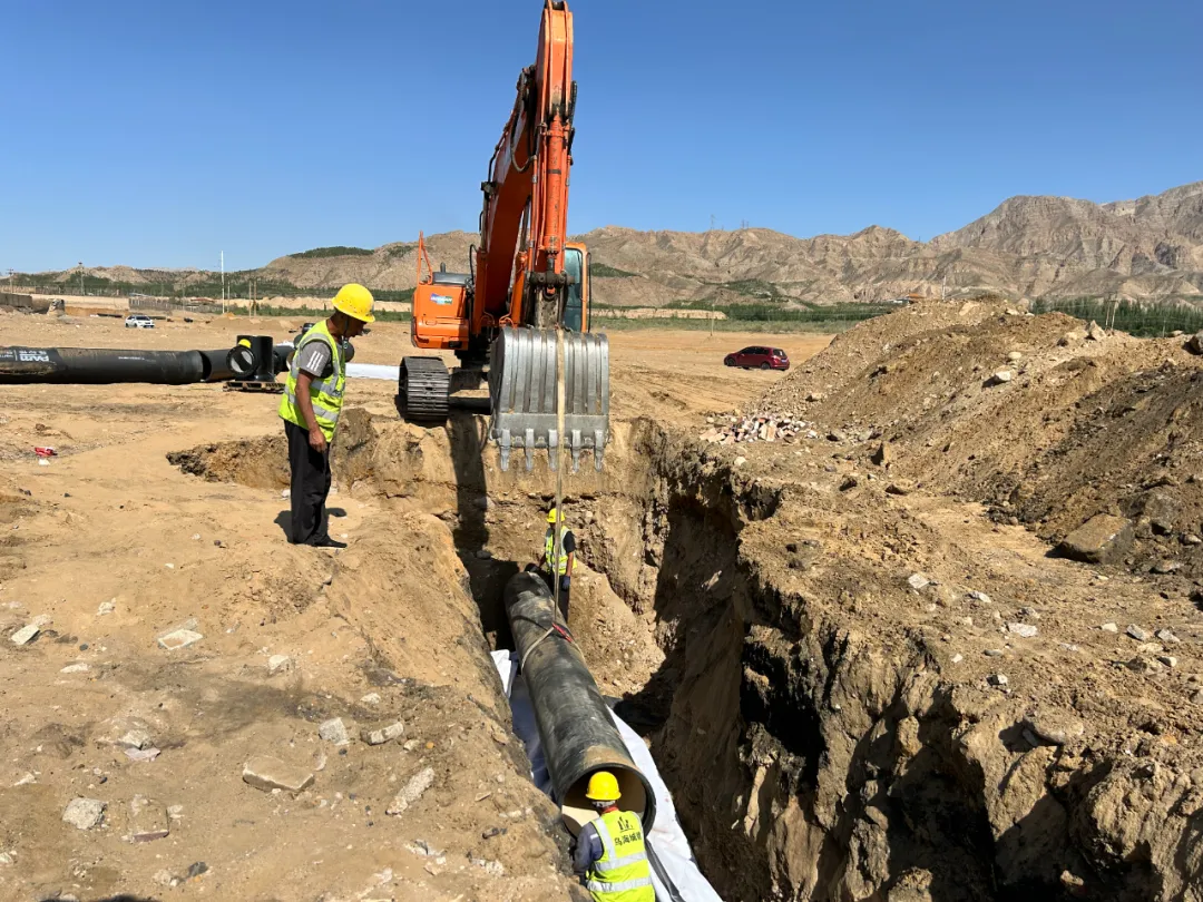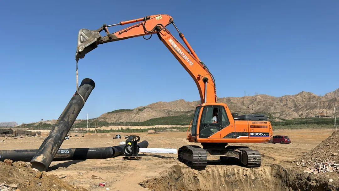 近日,記者在海勃灣區(qū)的南部凈水廠輸水管道項目現(xiàn)場看到,隨著挖掘機(jī)緩緩升起,一根長約6米的給水管被緩慢放進(jìn)坑道。隨后施工