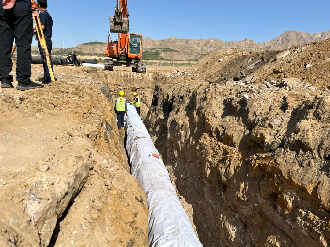 人員有條不紊的進(jìn)行輸水管道的鋪設(shè)、安裝工作。
