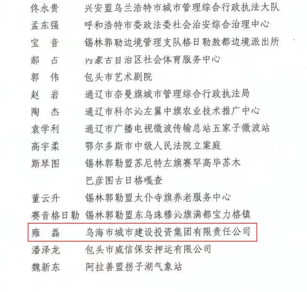 近日,內(nèi)蒙古自治區(qū)黨委宣傳部、內(nèi)蒙古自治區(qū)退役軍人事務(wù)廳、內(nèi)蒙古軍區(qū)政治工作局聯(lián)合開展2024年度“最美退役軍人”學習宣傳活動,全區(qū)共33名個人榮獲2024年度“最美退役軍人”稱號,其中,烏海市城投集團雍磊同志獲評,為市國資國企系統(tǒng)唯一獲評人員。