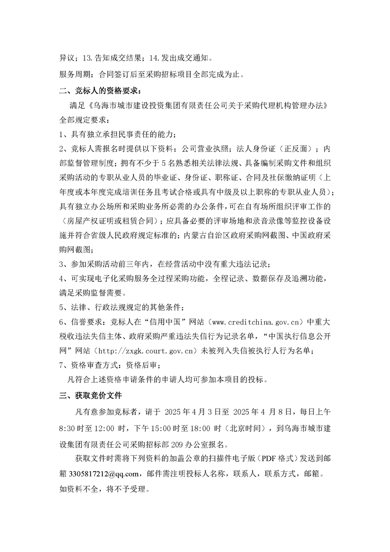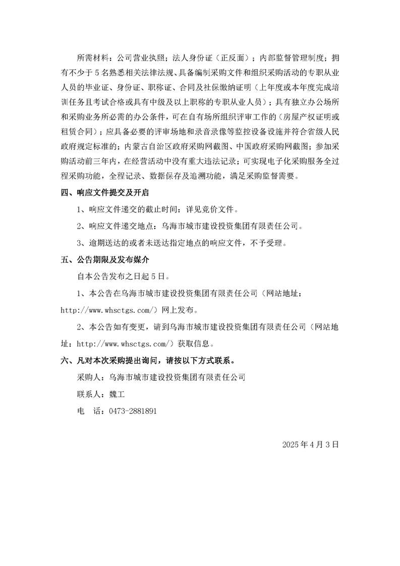 - 2025-12-15“烏海城投集團”微信公眾平臺服務(wù)項詢價公告