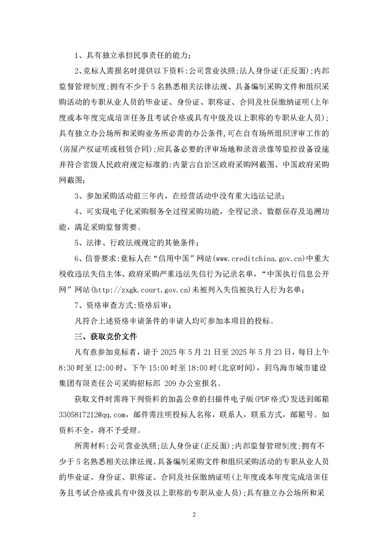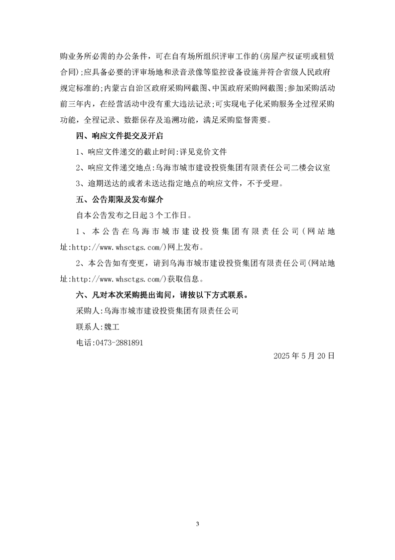 - 2025-12-15“烏海城投集團”微信公眾平臺服務(wù)項詢價公告