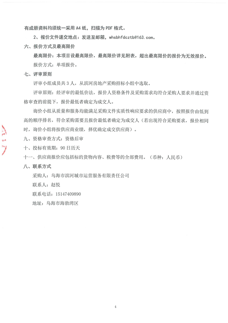 烏海市濱河城市運(yùn)營服務(wù)有限責(zé)任公司物業(yè)耗材供應(yīng)商采購詢價(jià)文件