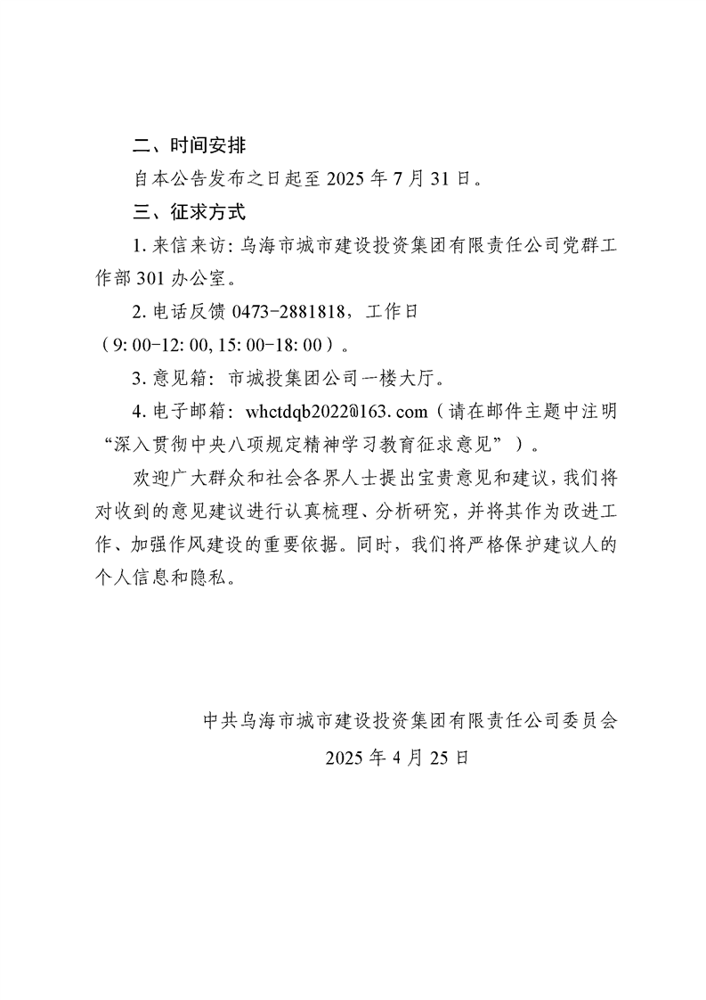 - 2025-10-14烏海市城市建設(shè)投資集團有限責任公司關(guān)于終止與內(nèi)蒙古華格項目管理咨詢有限責任公司業(yè)務(wù)合作的通知