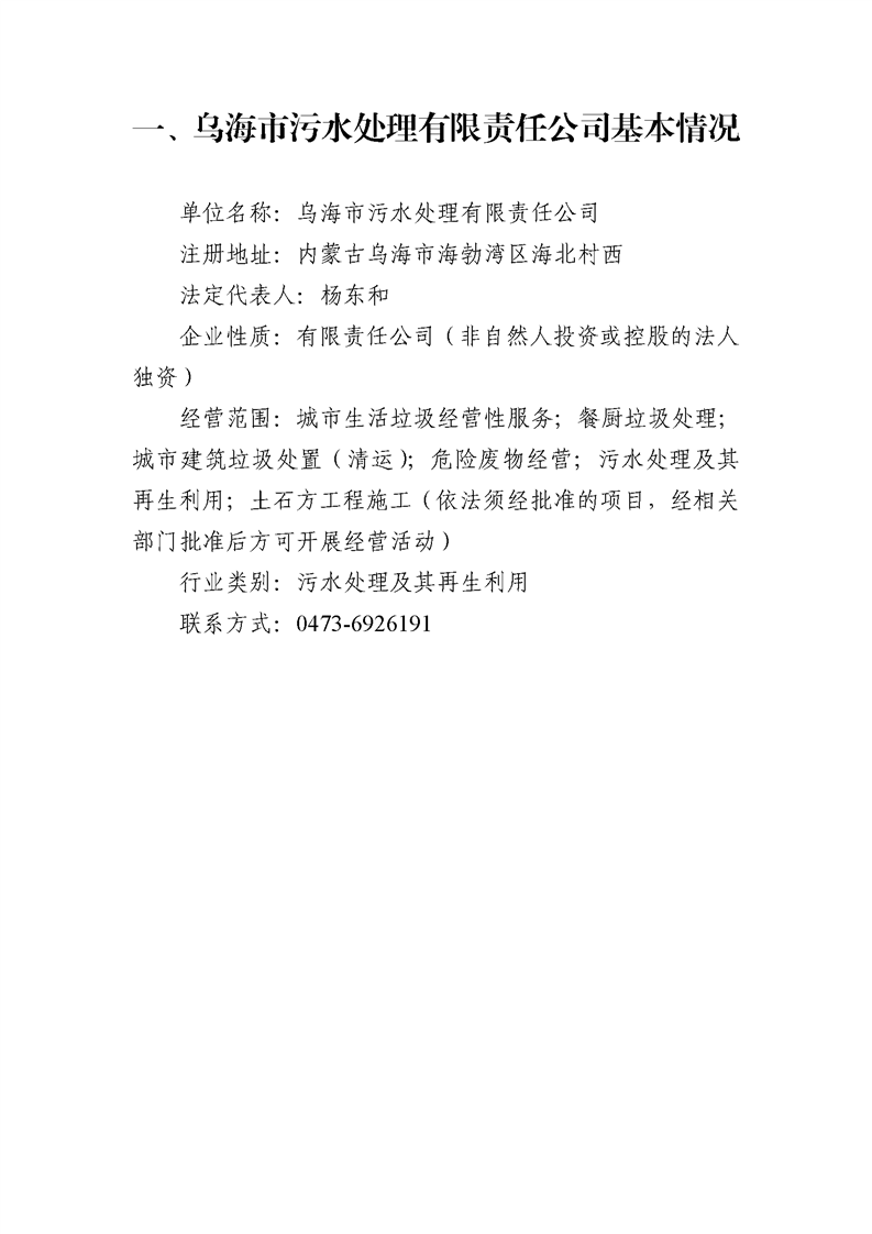 - 2025-04-10烏海市污水處理有限責(zé)任公司2024年度信息公開報告