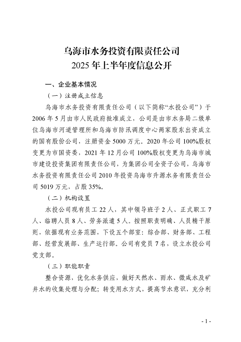 - 2025-04-22烏海市水務(wù)投資有限責(zé)任公司2025年第一季度信息公開(kāi)