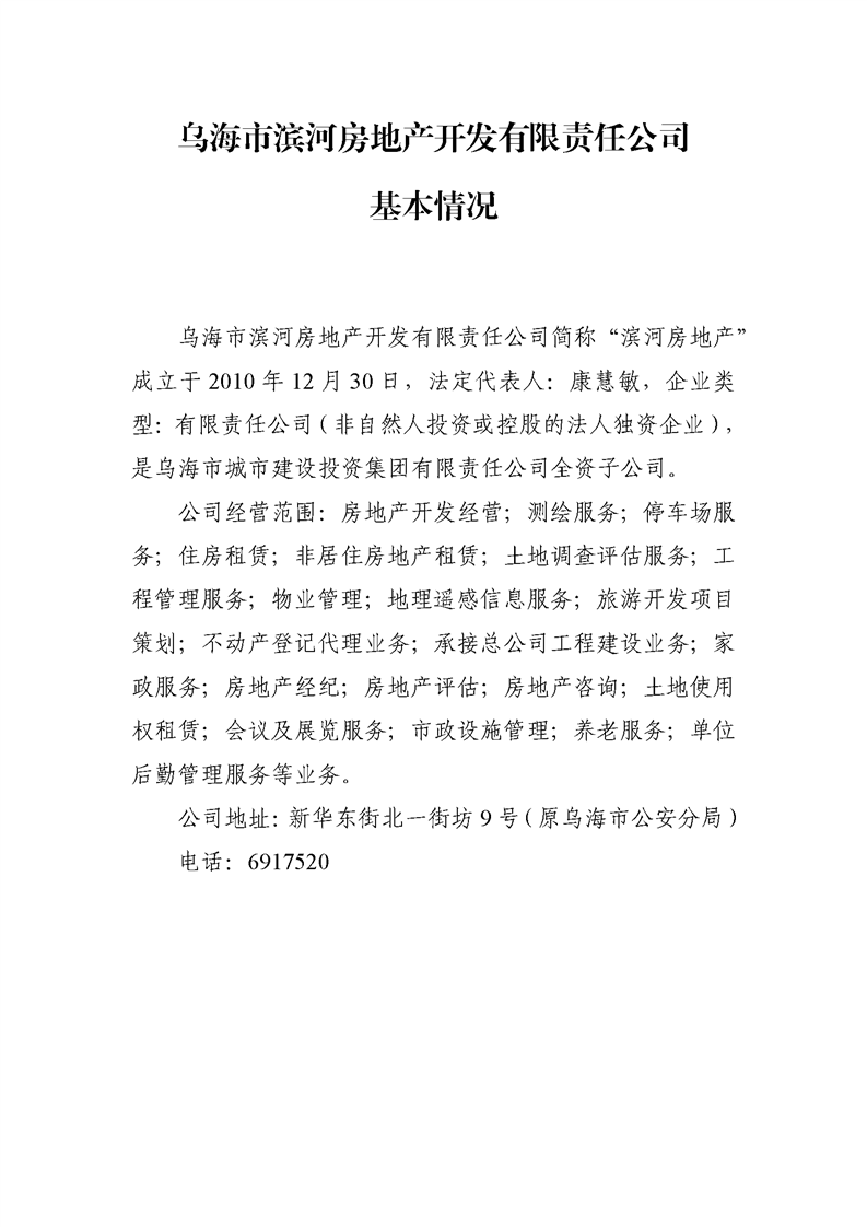 - 2024-07-09烏海市濱河房地產(chǎn)開(kāi)發(fā)有限責(zé)任公司2024年第二季度信息公開(kāi)