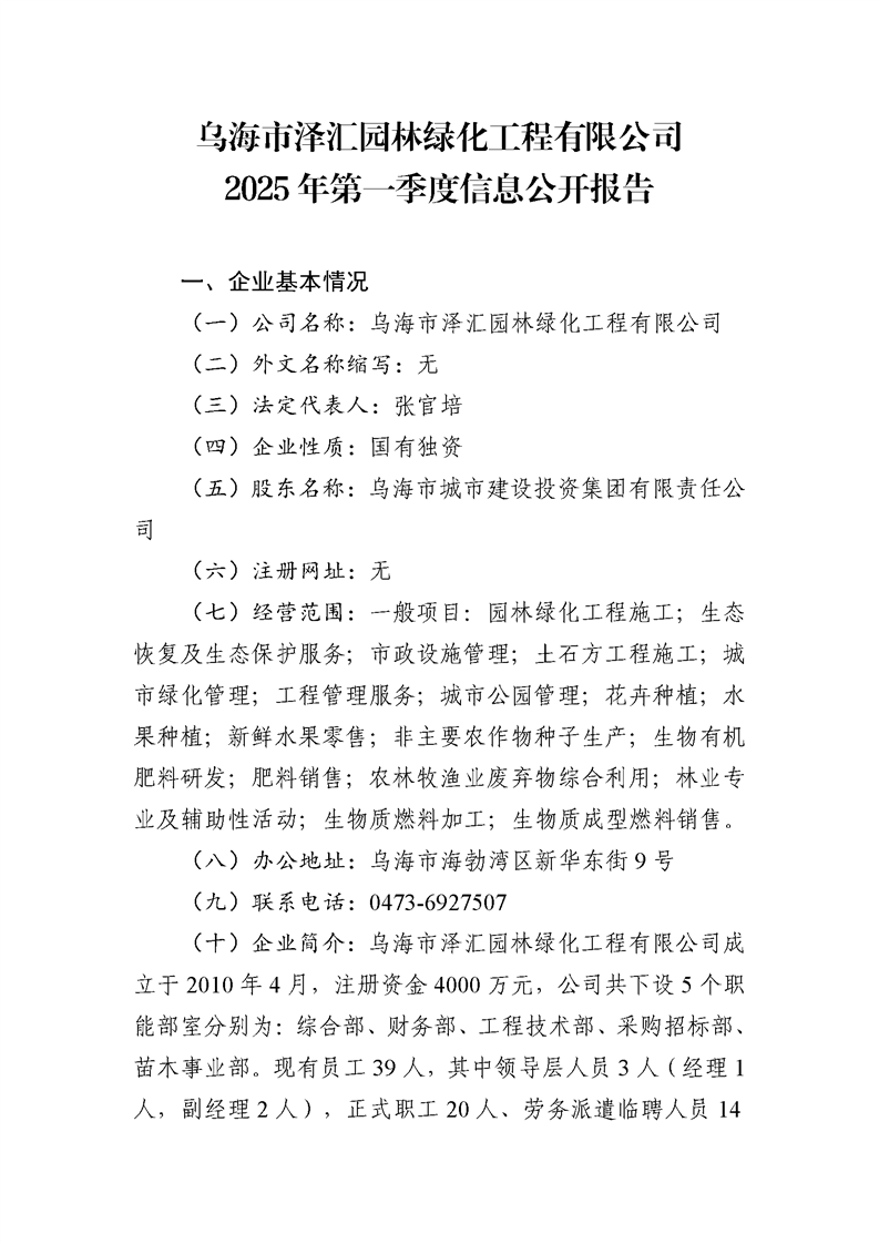 - 2025-03-10烏海市澤匯園林綠化工程有限公司2024年度信息公開(kāi)報(bào)告