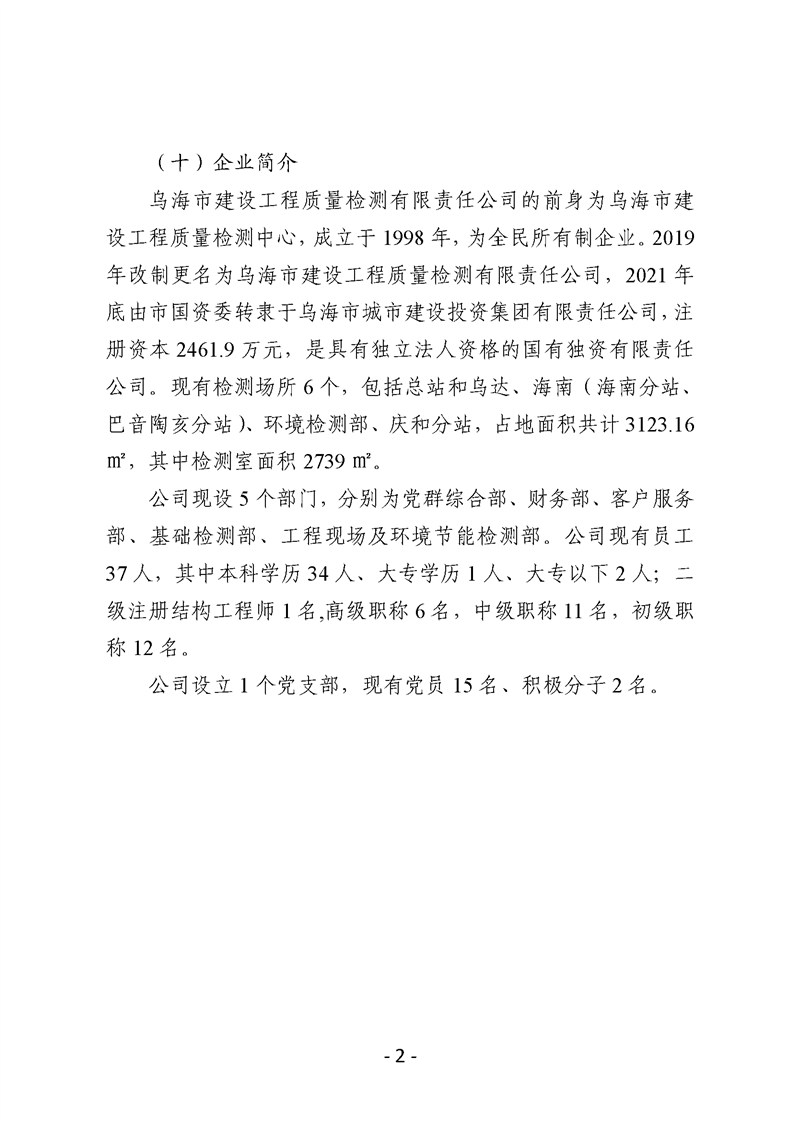 - 2025-03-10烏海市建設(shè)工程質(zhì)量檢測有限責任公司2024年度信息公開報告