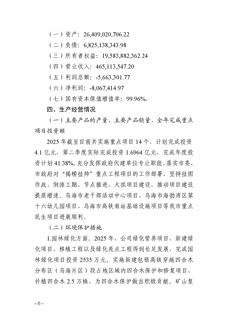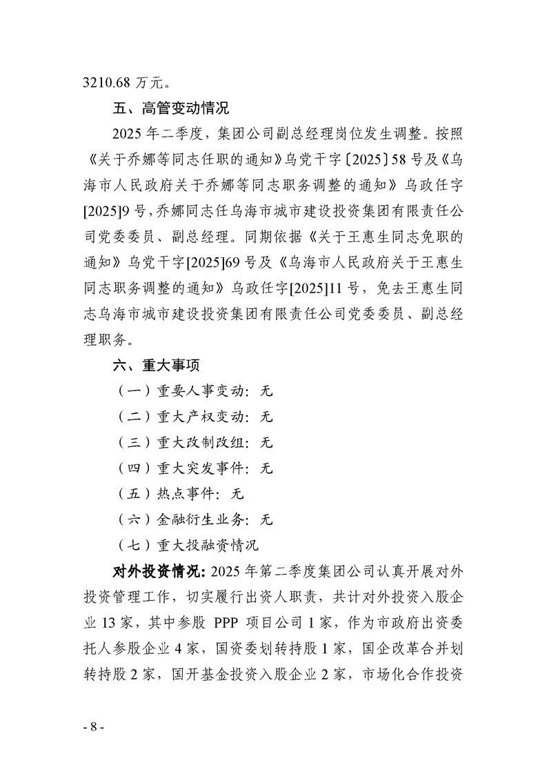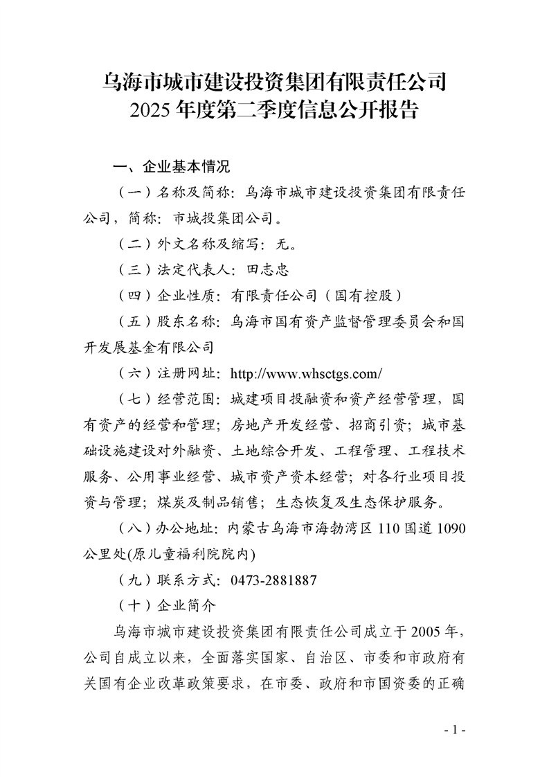 - 2025-10-21烏海市城市建設投資集團有限責任公司 2025年度第三季度信息公開報告