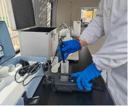 演練現(xiàn)場,水質(zhì)檢測車第一時(shí)間奔赴“事故”現(xiàn)場。檢測車配備了先進(jìn)的檢測設(shè)備,能在短時(shí)間內(nèi)對多種水質(zhì)指標(biāo)進(jìn)行初步分析,為后續(xù)精準(zhǔn)檢測提供方向。抵達(dá)現(xiàn)場后,檢測人員迅速行動,他們手持便攜儀器對水源水、出廠水和管網(wǎng)水進(jìn)行現(xiàn)場檢驗(yàn)。這些便攜儀器操作簡便、檢測速度快,能快速檢測出pH值、渾濁度、色度、總硬度等關(guān)鍵指標(biāo),初步判斷水質(zhì)是否存在異常。檢測人員嚴(yán)格按照規(guī)范流程操作,爭分奪秒地獲取檢測數(shù)據(jù),不放過任何一處潛在隱患。
