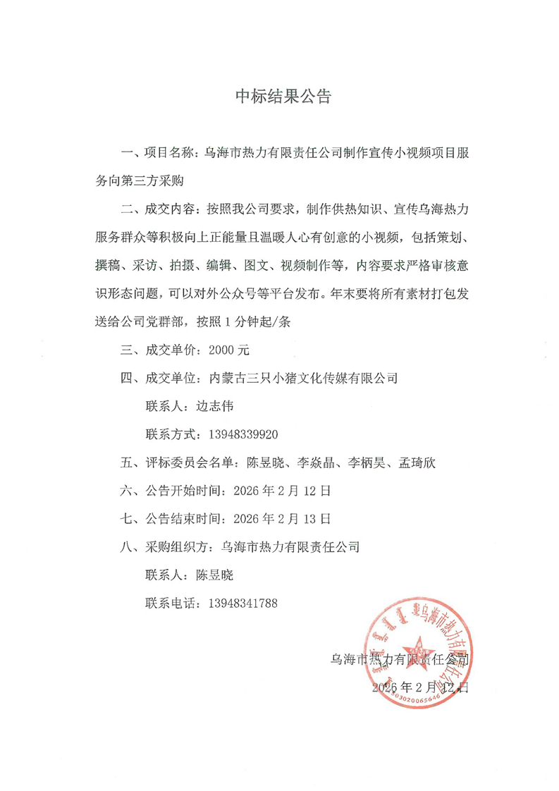 - 2026-03-24烏海市熱力有限責(zé)任公司客戶服務(wù)中心購買工作服項(xiàng)目招標(biāo)代理服務(wù)【招標(biāo)計(jì)劃】