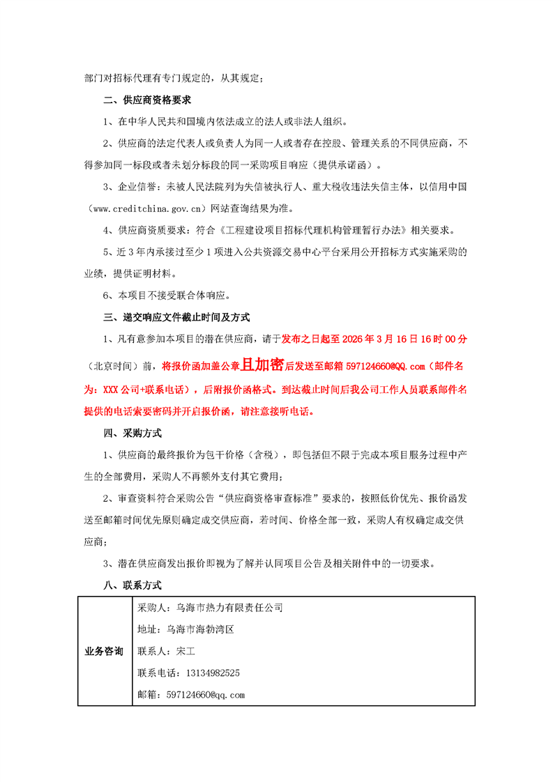 - 2026-03-20烏海市熱力有限責任公司第三方律所咨詢服務【招標計劃】