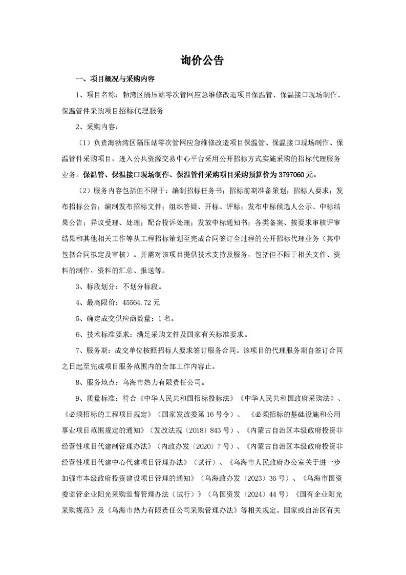 - 2026-03-19海勃灣區(qū)隔壓站零次管網應急維修改造項目保溫管、保溫接口現場制作、保溫管件采購項目【招標計劃】