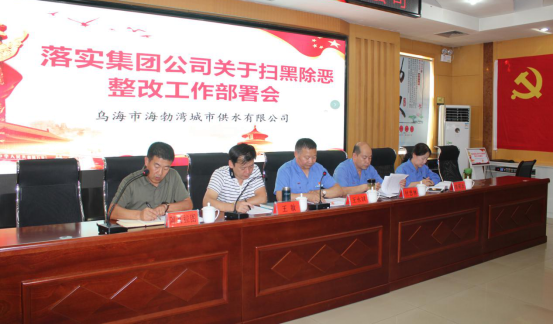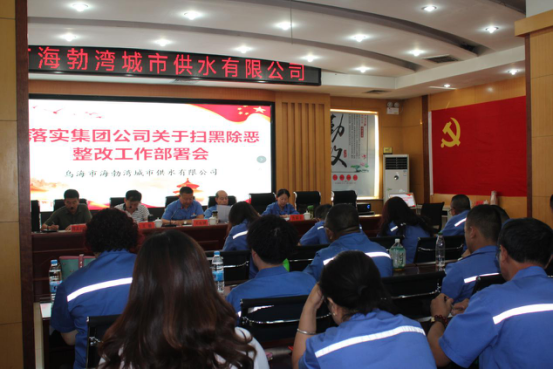 會議重點部署落實集團(tuán)公司《關(guān)于印發(fā)<中央掃黑除惡第15督導(dǎo)組督導(dǎo)內(nèi)蒙古自治區(qū)第一階段督導(dǎo)反饋意見和下沉烏海市督導(dǎo)提出問題的整改方案>的通知》(烏投資集團(tuán)發(fā)〔2019〕126號)文件精神,明確供水公司整改方案相關(guān)要求等;與會人員簽訂《烏海市海勃灣城市供水有限公司掃黑除惡專項斗爭承諾書》;通報《烏海市海勃灣城市供水有限公司關(guān)于落實掃黑除惡工作推進(jìn)情況》。