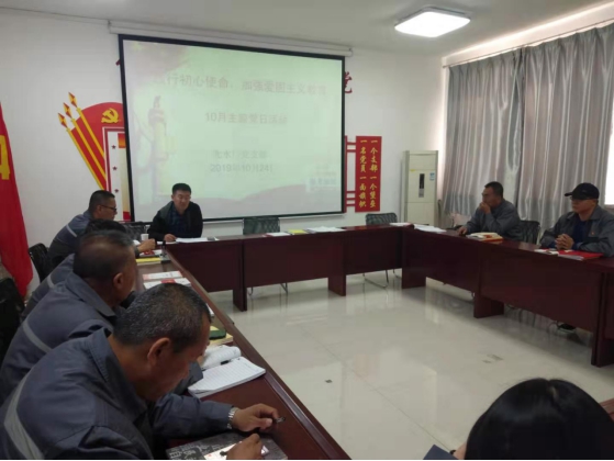 按照《關(guān)于在市國資系統(tǒng)基層黨組織中開展“踐行初心使命,加強(qiáng)愛國主義教育”主題黨日活動的通知》要求,為激發(fā)廣大黨員干部的愛國熱情,凝聚奮進(jìn)新時(shí)代的磅礴偉力,使愛國主義成為黨員干部的堅(jiān)定信念、精神力量和自覺行動,10月24日,城市供水公司開展“踐行初心使命,加強(qiáng)愛國主義教育”主題黨日活動。五個(gè)基層黨支部分別完成奏唱國歌、重溫入黨誓詞、誦讀黨章、繳納黨費(fèi)規(guī)定動作后,黨委委員在所在支部解讀《深入學(xué)習(xí)貫徹習(xí)近平總書記考察內(nèi)蒙古重要講話精神宣傳提綱》并組織黨員開展豐富多彩的主題黨日活動。